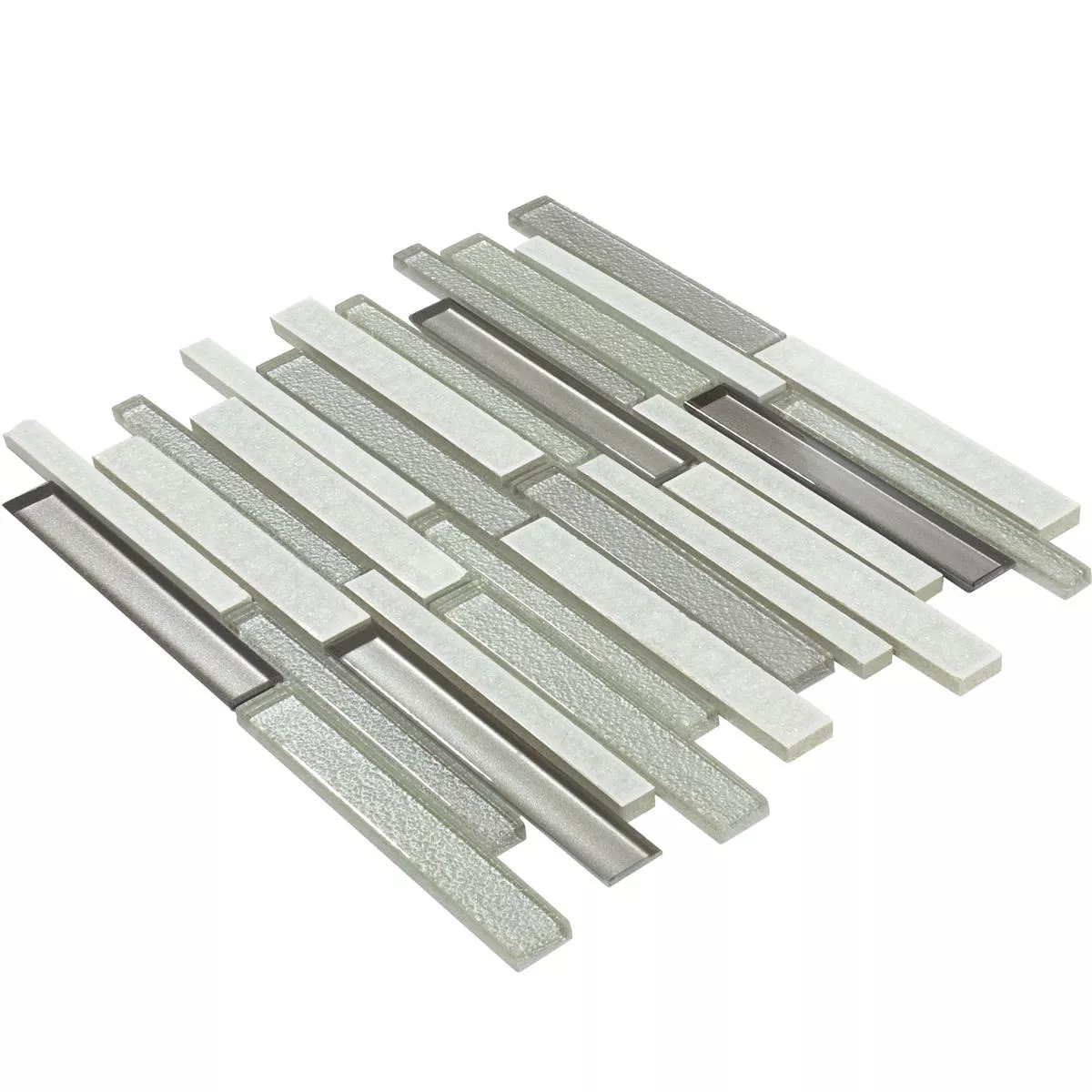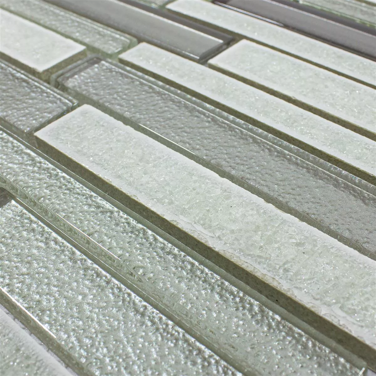 La combinazione di ceramica, pietra naturale e vetro conferisce a queste piastrelle una struttura unica e garantisce una finitura piacevole e brillante. Le dimensioni della pietra di 15x148 mm e 23x148 mm aggiungono una dimensione interessante.