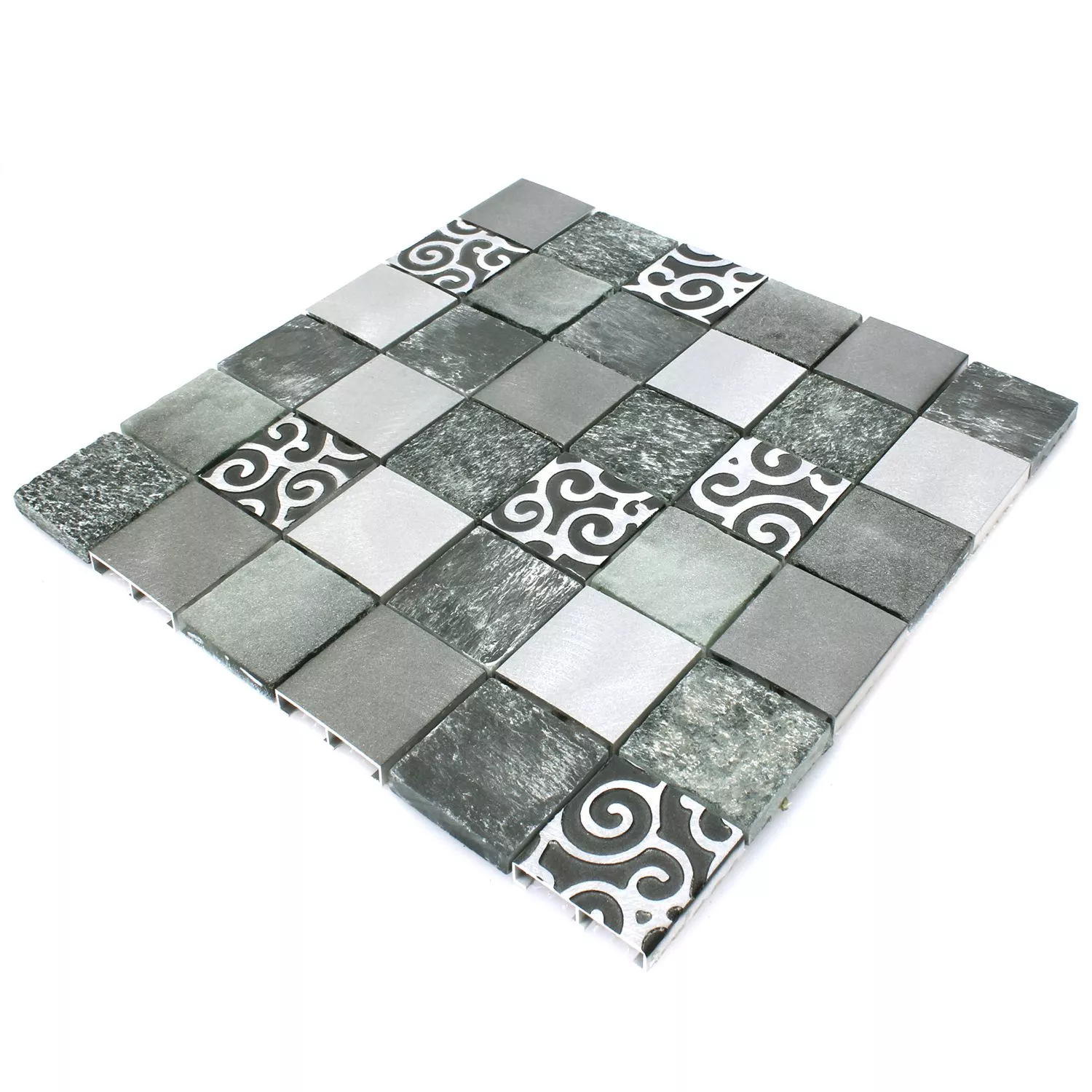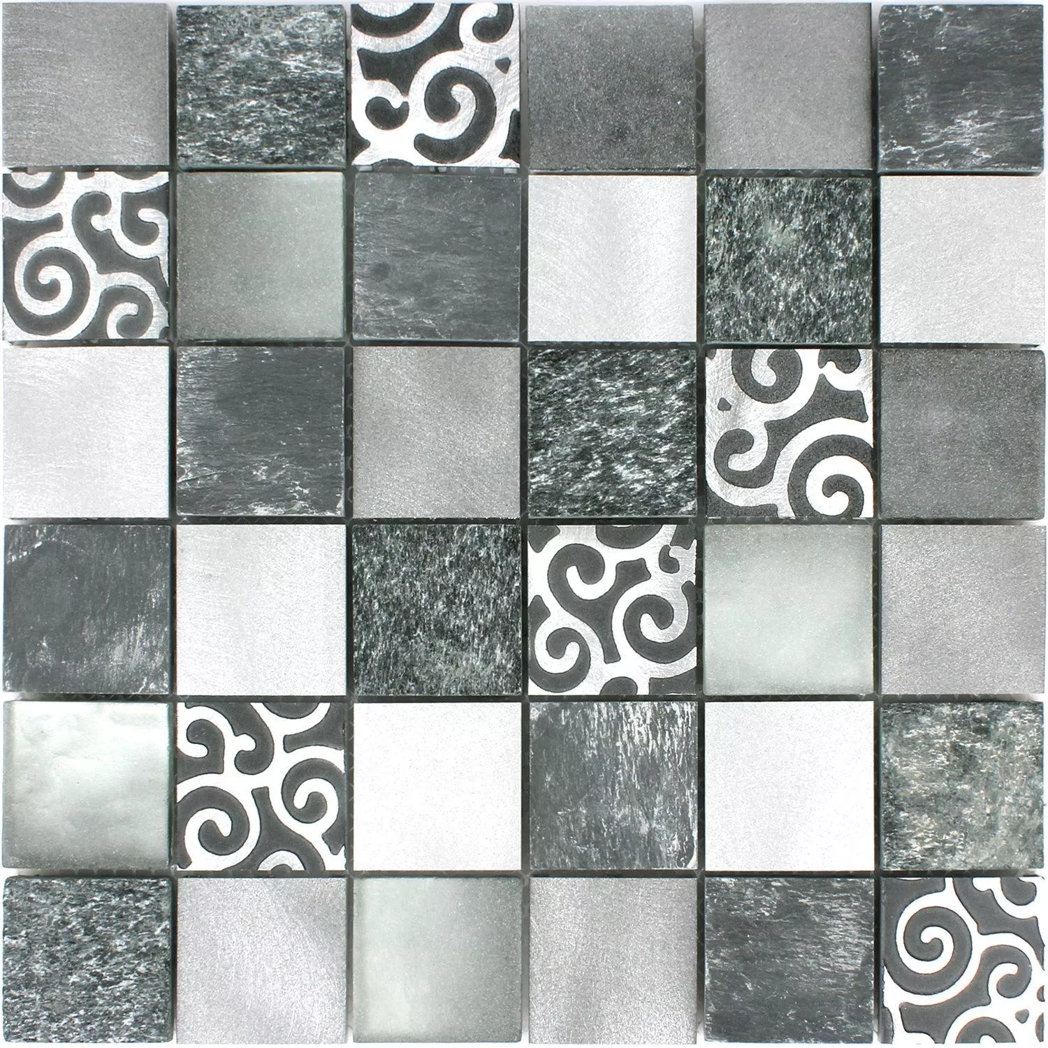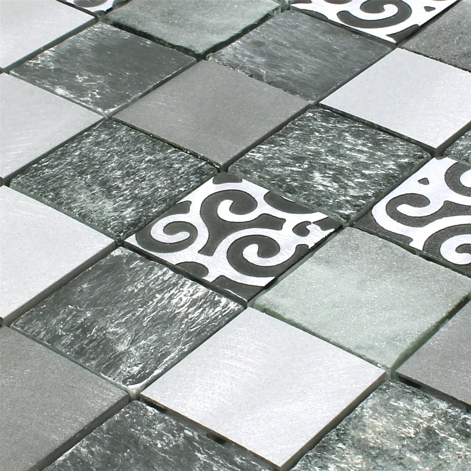 Mosaico Vetro Pietra Naturale Alluminio Valdivia Grigio