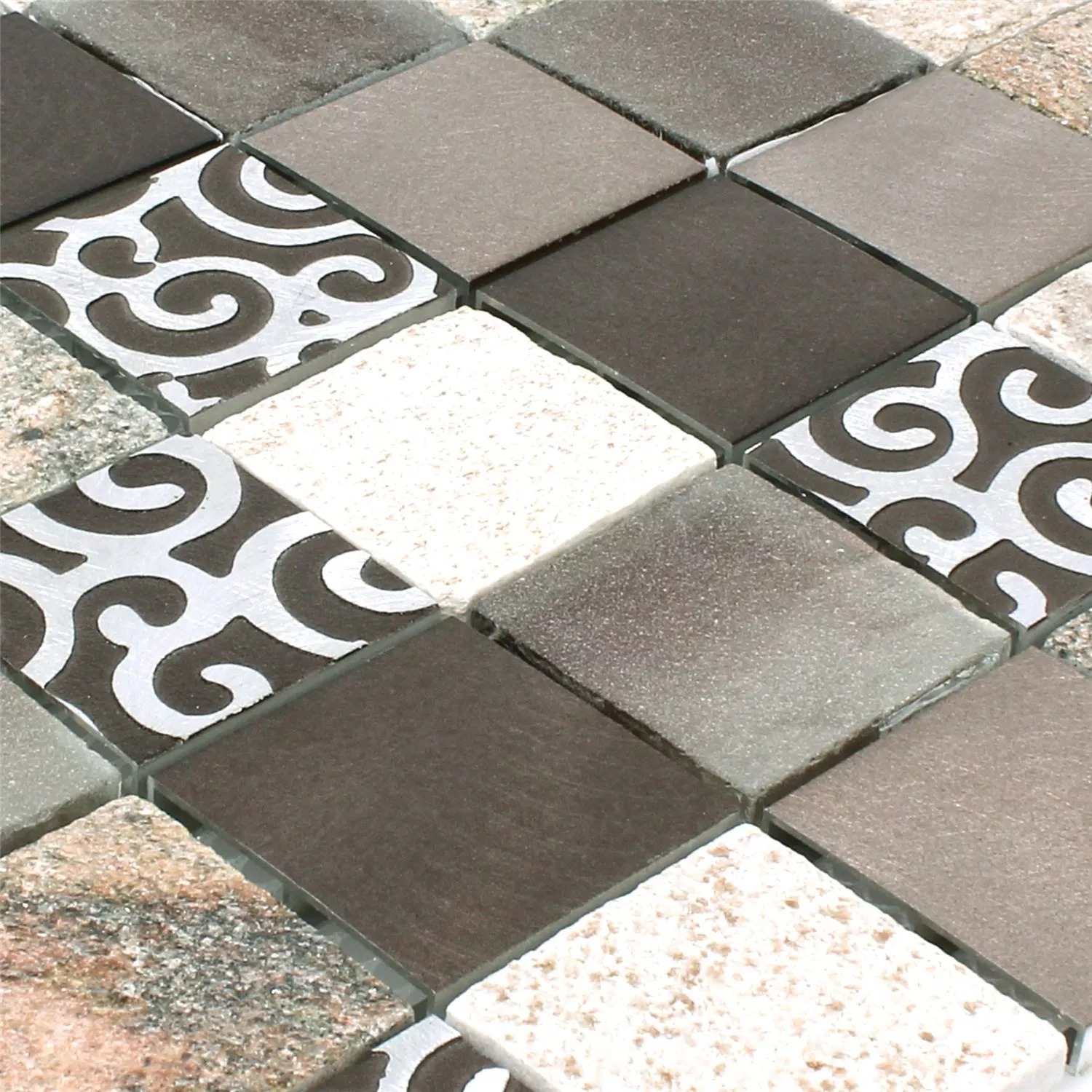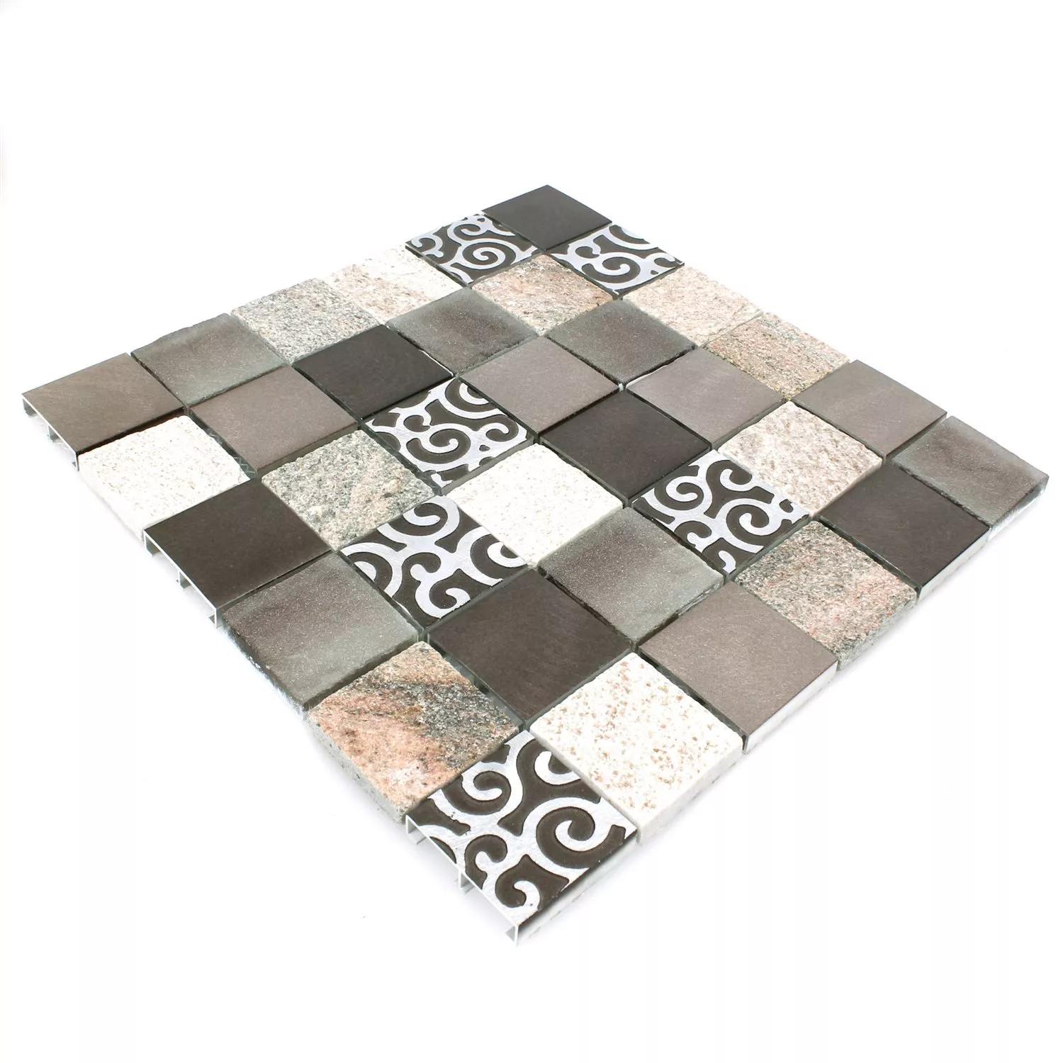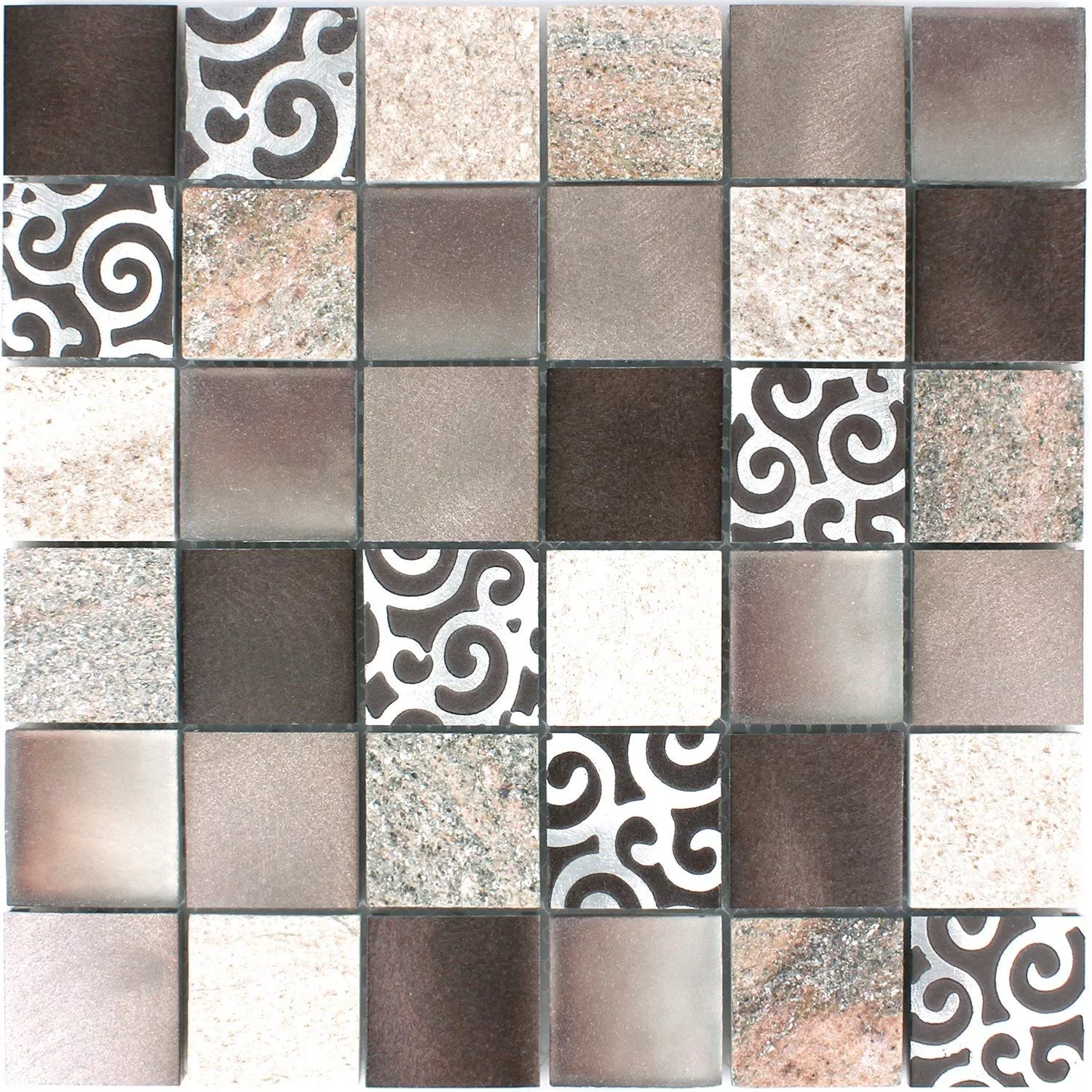 Mosaico Vetro Pietra Naturale Alluminio Valdivia Marrone