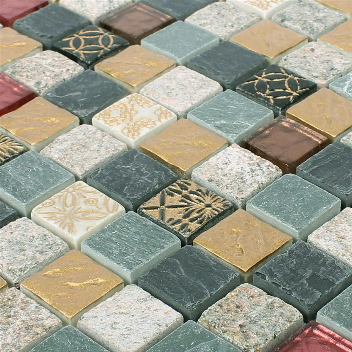 Mosaico Vetro Pietra Naturale Mix Sulluna Oro Grigio