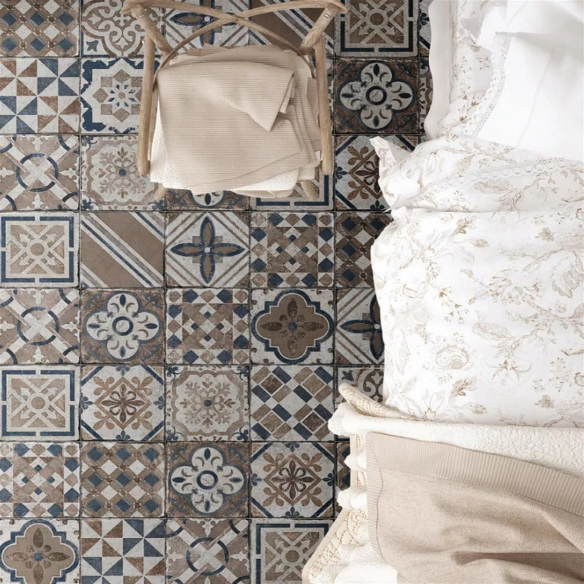 Le piastrelle in cemento sono progettate con un aspetto retrò e vintage, perfetto per progettare ambienti dallo stile shabby chic o industriale alla moda. I diversi colori ti consentono di progettare una combinazione di colori individuale per la tua area o di creare un accento di colore.