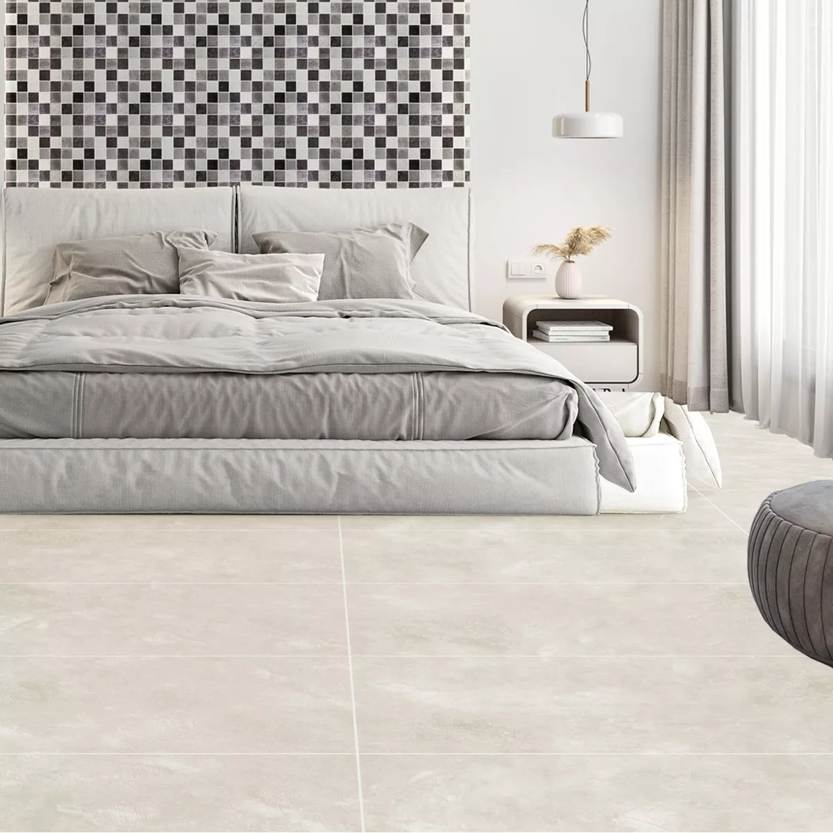 Le piastrelle Cortina uniscono la funzionalità al design estetico. La sua superficie opaca effetto cemento crea un'atmosfera moderna e urbana, mentre la sfumatura color crema irradia calore e comfort. Perfetto per chi cerca un look contemporaneo con vantaggi pratici.