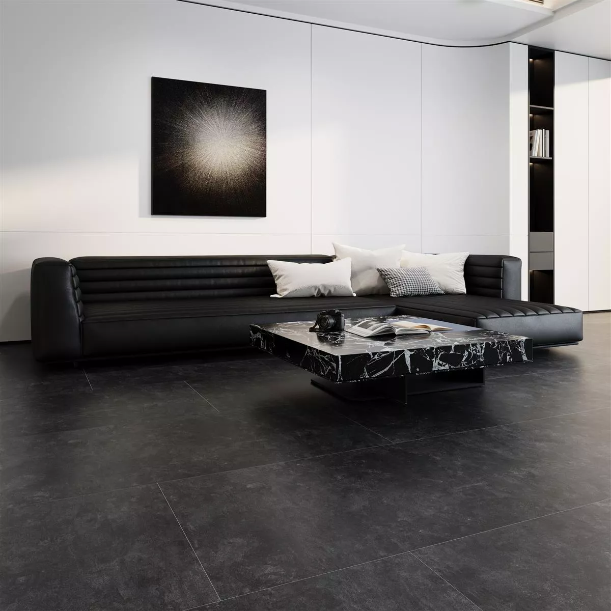 Il pavimento in gres porcellanato Triton color antracite convince per il suo moderno aspetto cemento e la sua versatilità. Con dimensioni 60x120 cm e uno spessore di 8 mm, è ideale sia per uso interno che esterno. Che si tratti del bagno, della cucina, del soggiorno, del corridoio o della lavanderia, queste piastrelle si adattano perfettamente a qualsiasi ambiente. Particolarmente degna di nota è la sua idoneità all'uso su pavimenti e pareti doccia, ma può essere utilizzata anche come piastrella da rivestimento.
