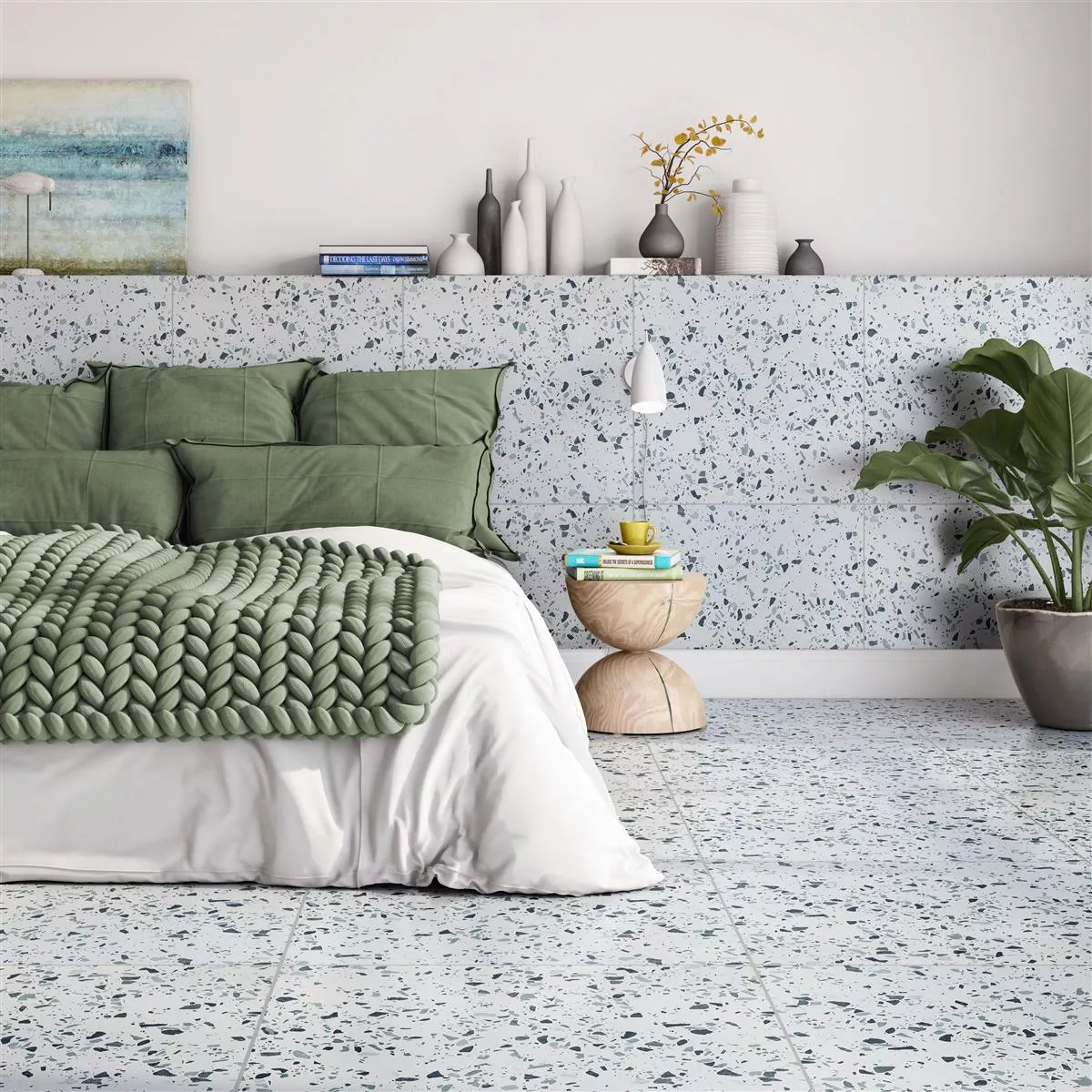Le piastrelle per pavimenti Liberty XXL in un verde rinfrescante e generose dimensioni 80x80 cm sono più di un semplice rivestimento per la tua stanza: sono una dichiarazione. Realizzate in gres porcellanato di alta qualità, queste piastrelle hanno un caratteristico aspetto retrò e pietra che dona alla tua stanza un'eleganza senza tempo.