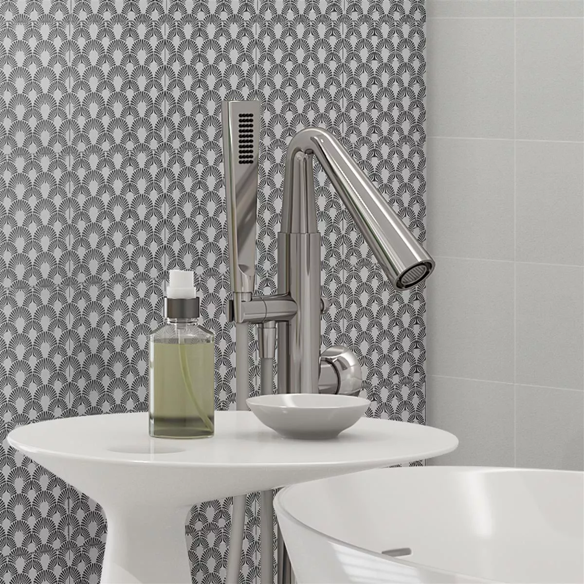 Scopri l'eleganza senza tempo dei nostri pavimenti e rivestimenti con ornamenti floreali neri realizzati in gres porcellanato smaltato e dona ai tuoi ambienti un tocco di raffinatezza. Queste piastrelle combinano un design elegante con proprietà funzionali e creano un'atmosfera elegante in soggiorni, cucine, bagni e docce.