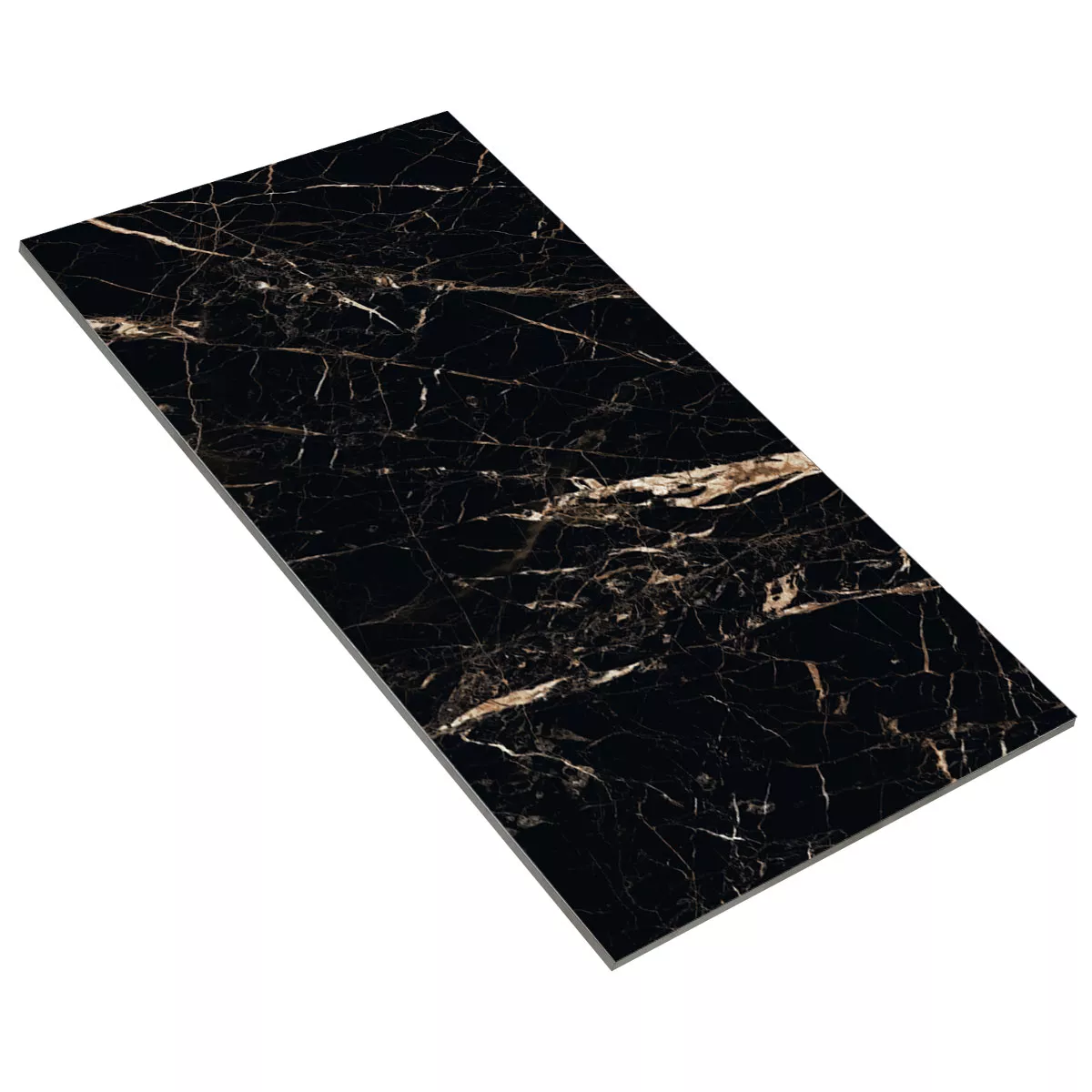 Piastrelle Trento Marmo Ottica Nero Oro Lucidato Lucida 60x120cm