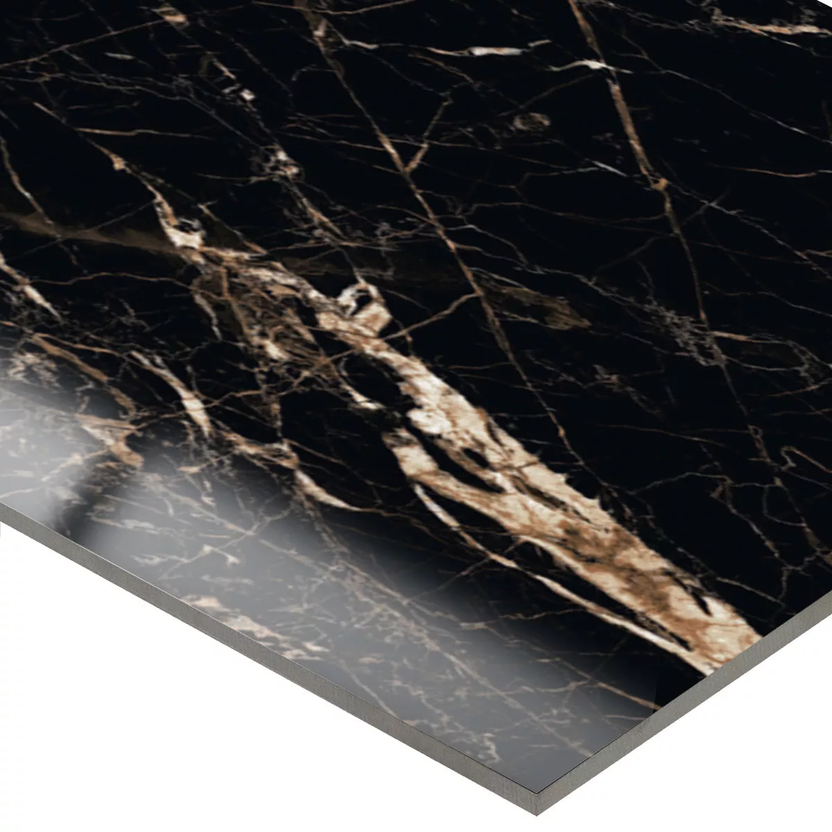 Aggiungi un tocco di lusso alla tua casa con i nostri squisiti pavimenti Trento. Queste impressionanti piastrelle nere con accenti dorati imitano perfettamente la bellezza senza tempo del marmo e donano un'elegante eleganza a qualsiasi stanza.
