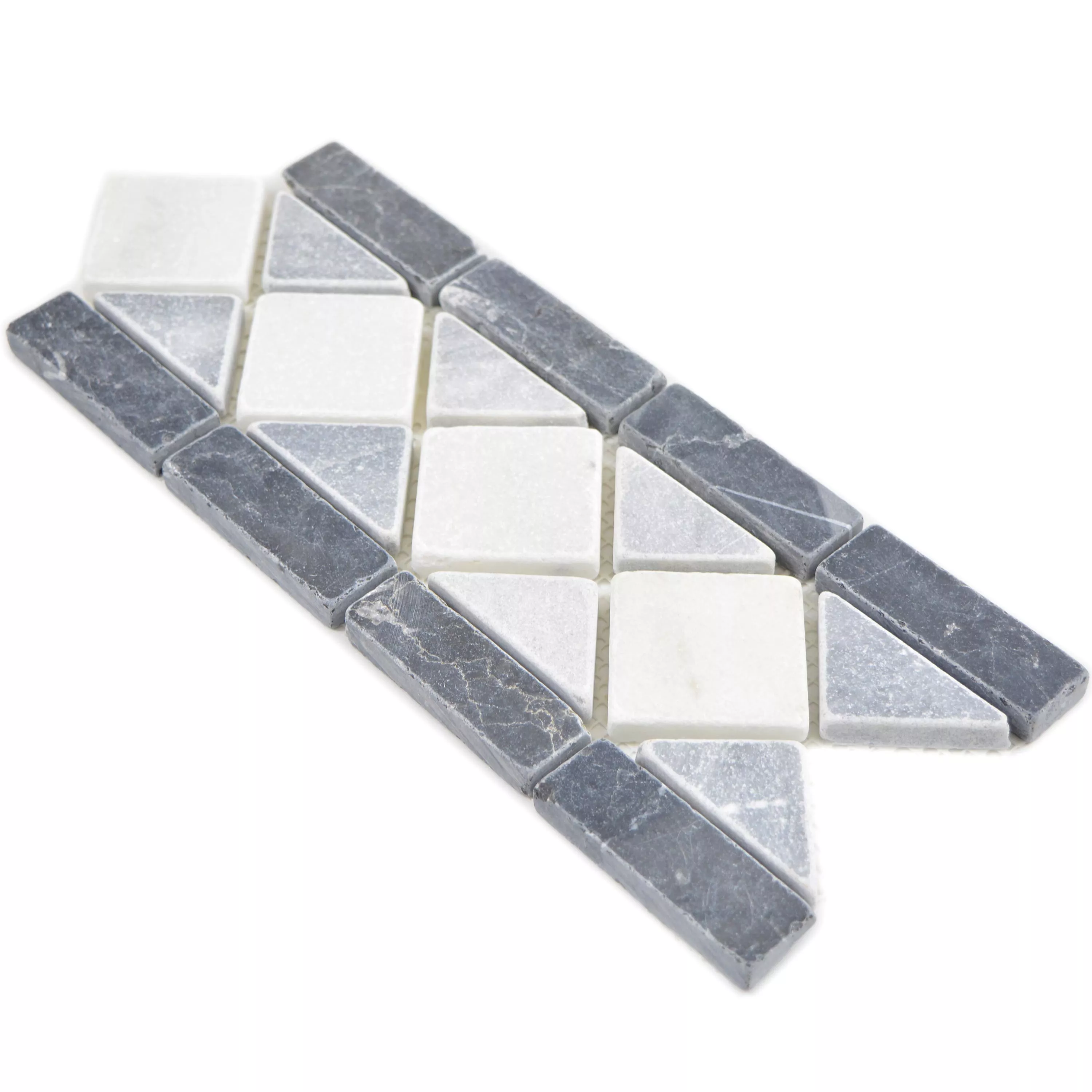 Il bordo è nero, bianco e grigio. Per la produzione è stata utilizzata pietra naturale. Questo ha il vantaggio che non tutte le impronte digitali sono immediatamente visibili su di esso. I bordi hanno uno spessore di 10 mm. Poiché il bordo piastrellato è disponibile per interni ed esterni, può essere utilizzato per numerose stanze. Dal bagno di casa alla terrazza o al giardino d'inverno, tutto può essere aggiornato con esso.
