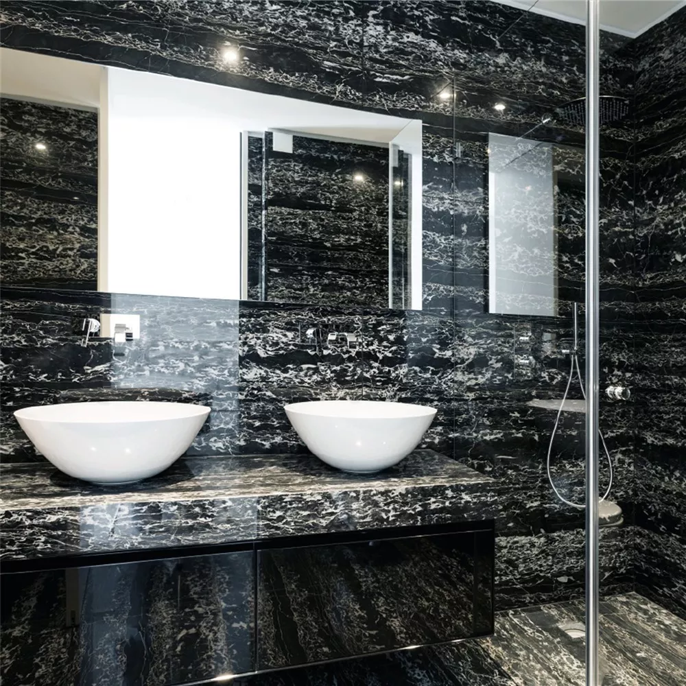 Pietra Naturale Piastrella Ottica Discovery Lucidato Nero Galactica 60x60cm