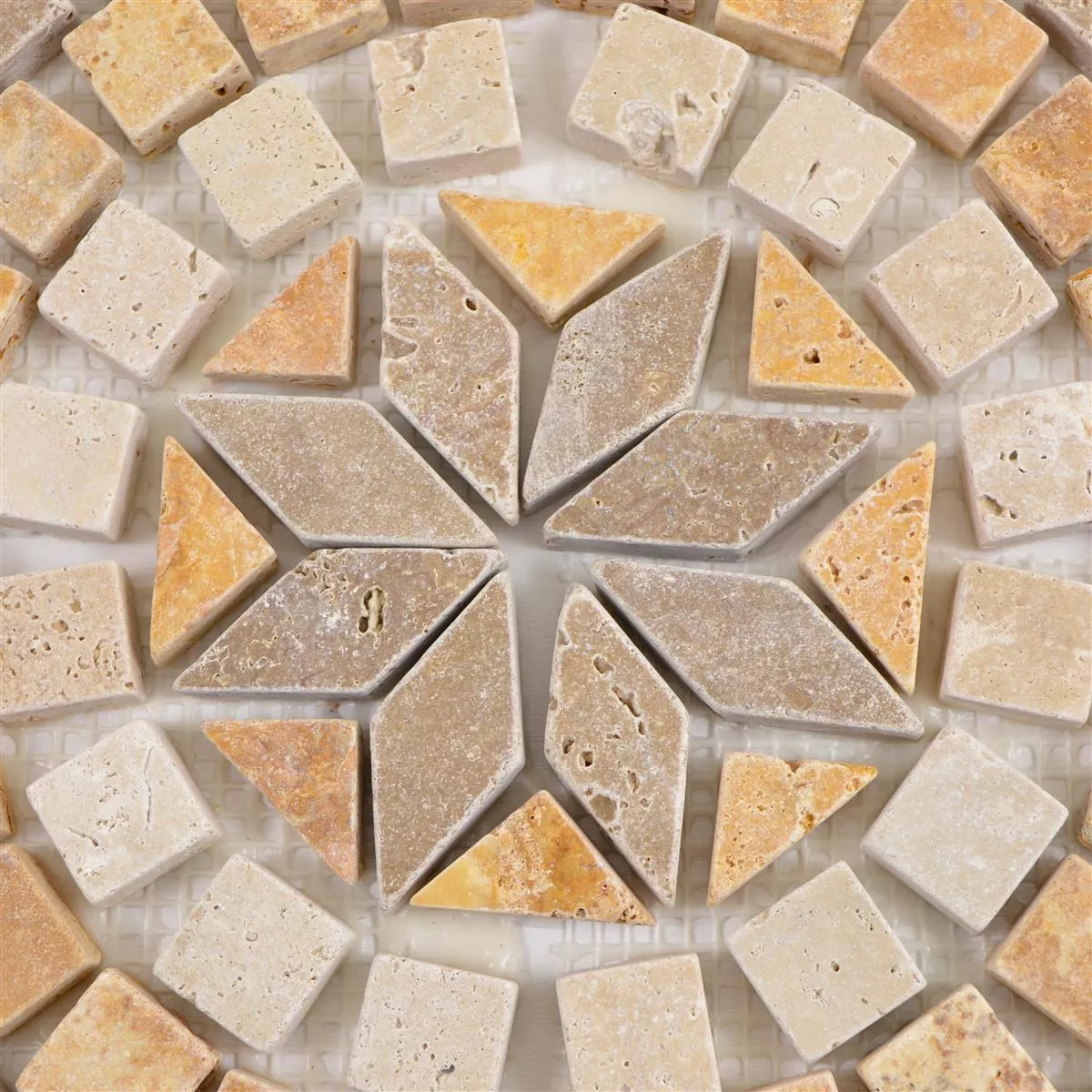 Le piastrelle in pietra naturale sono realizzate in travertino e possono essere utilizzate in molti modi. Non sono adatti solo per interni, ma anche per esterni. Sono antiscivolo e resistenti al gelo. Il livello di abrasione 4 consente l'uso quotidiano del pavimento piastrellato. Poiché le tessere di mosaico possono essere utilizzate anche in zone umide, sono la decorazione perfetta per l'area della piscina.