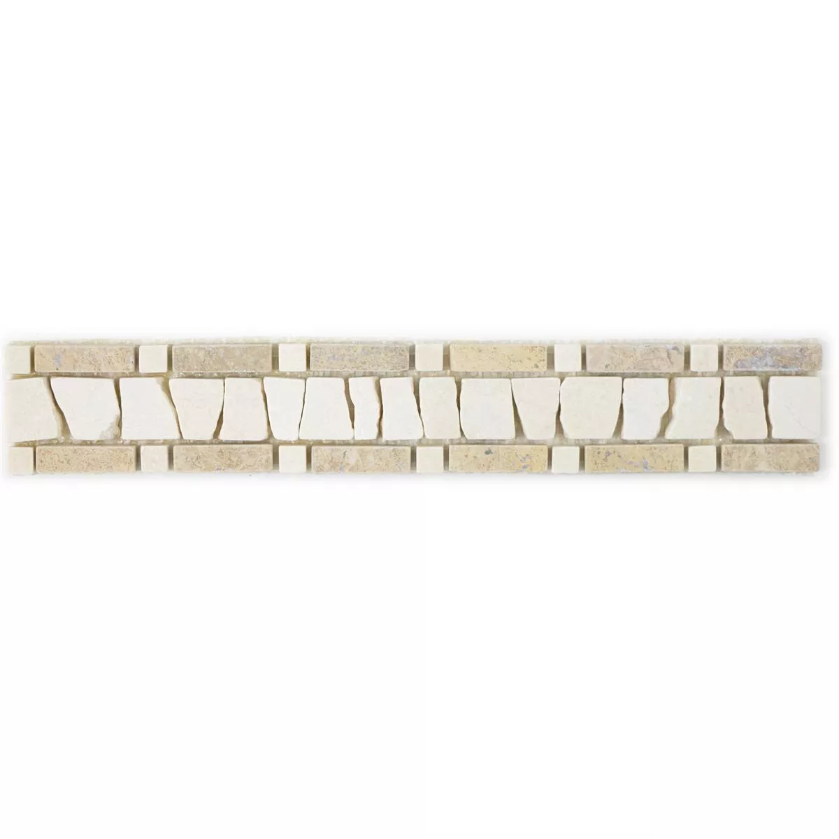 Il bordo in piastrelle di pietra naturale Vimeiro offre un bellissimo bordo. Bordi, bordi e angoli possono essere rifiniti in modo ordinato con il bordo in pietra naturale. Il motivo a mosaico dà vita allo spazio. Il bordo delle piastrelle è adatto per uso interno ed esterno. È un materiale resistente al gelo.