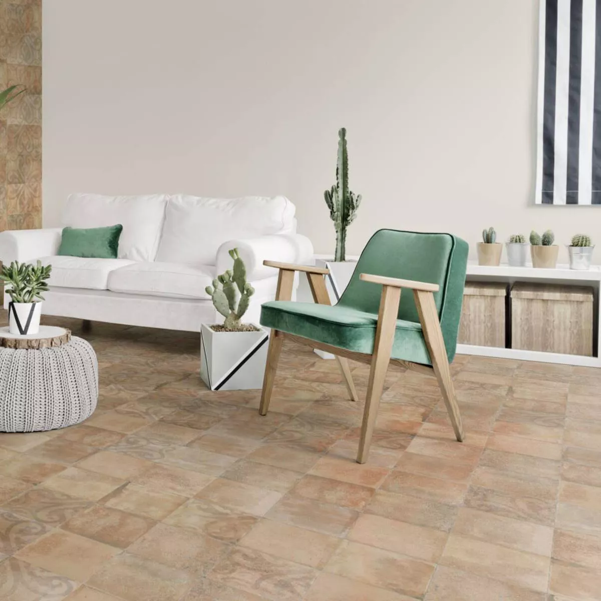 Una caratteristica speciale delle piastrelle per pavimenti Queens è la loro resistenza allo scivolamento. Offrono la massima sicurezza, sia che si cammini a piedi nudi in bagno o con le scarpe in corridoio. Le proprietà impermeabili e antigelo garantiscono a queste piastrelle in gres porcellanato una lunga durata. Questo le rende perfette non solo per l'uso interno, ma anche per verande e spazi commerciali.