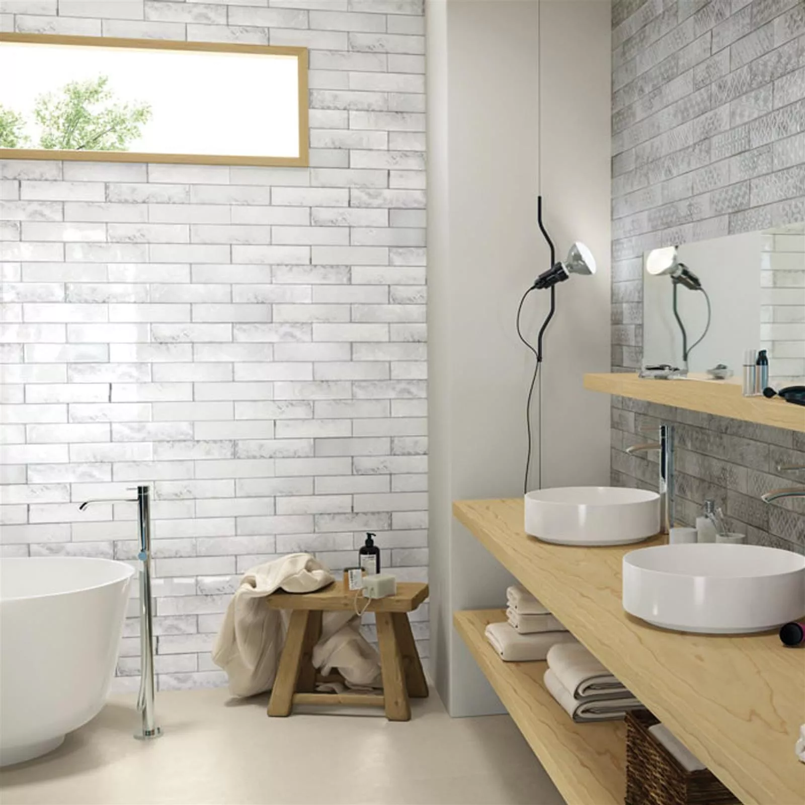 Il rivestimento First è una piastrella in gres lucido. La superficie non è solo lucida, ma ha anche una struttura leggermente ondulata. Ciò consente alla luce solare di irrompere sulla superficie delle piastrelle e creare una grande brillantezza. Tuttavia, le piastrelle non abbagliano! Il rivestimento con bordo naturale in argento è facilmente abbinabile agli altri colori. A causa delle dimensioni, la piastrella può essere utilizzata in vari modi. Può essere utilizzato come mensola a muro o far sembrare le pareti in mattoni. Fanno anche una bella impressione quando sono posizionati in posizione verticale sul muro. Non solo la cucina o il bagno possono essere ravvivati con esso, ma anche i corridoi e gli ingressi.