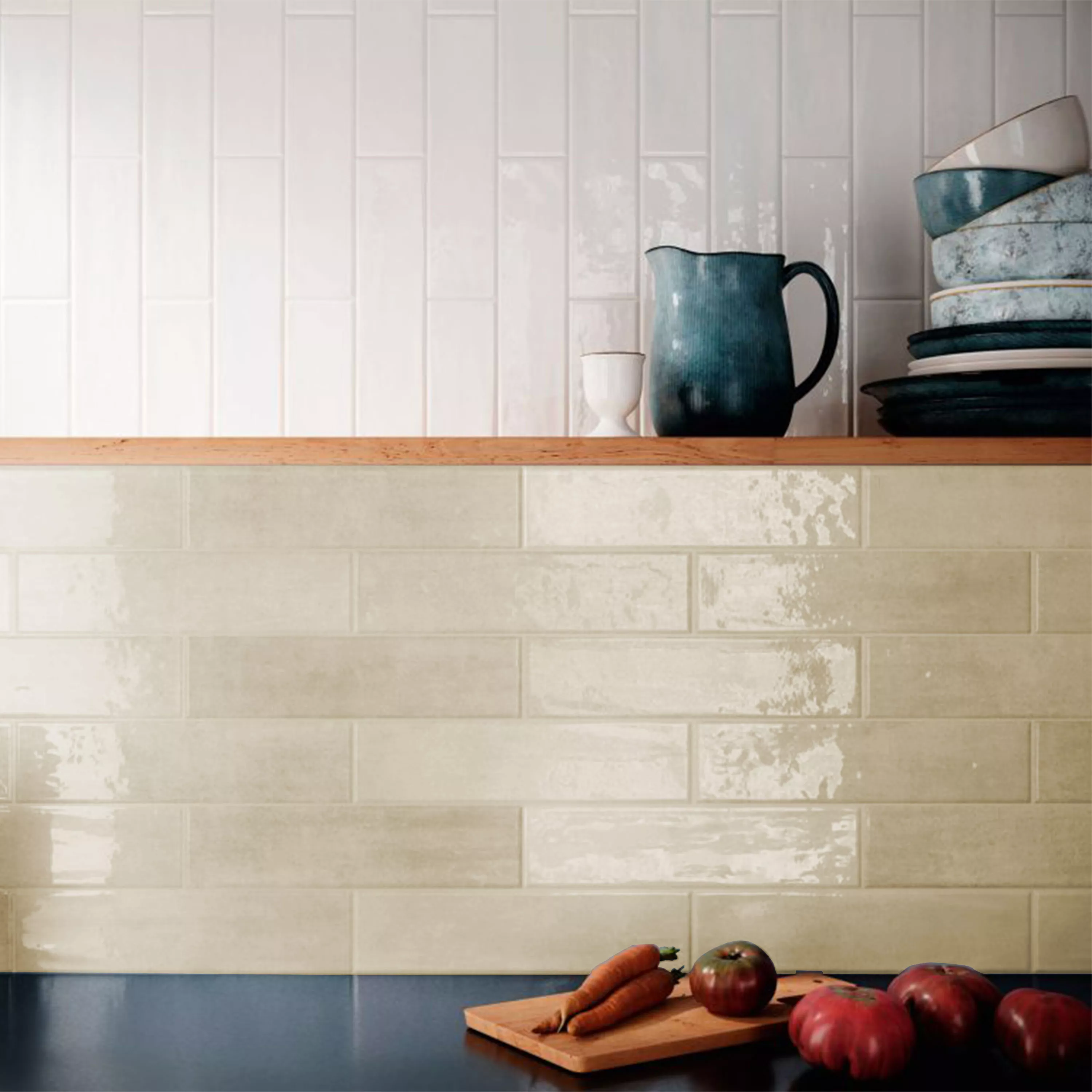 Aggiungi un tocco di raffinatezza alle tue pareti con i nostri rivestimenti smaltati Verbania in avorio lucido. Queste piastrelle quadrate da 7,5x30 cm e 8,4 mm di spessore donano un'estetica vintage alla tua casa. La superficie ondulata conferisce alle piastrelle una texture unica, mentre la superficie lucida riflette la luce e crea un ambiente luminoso.