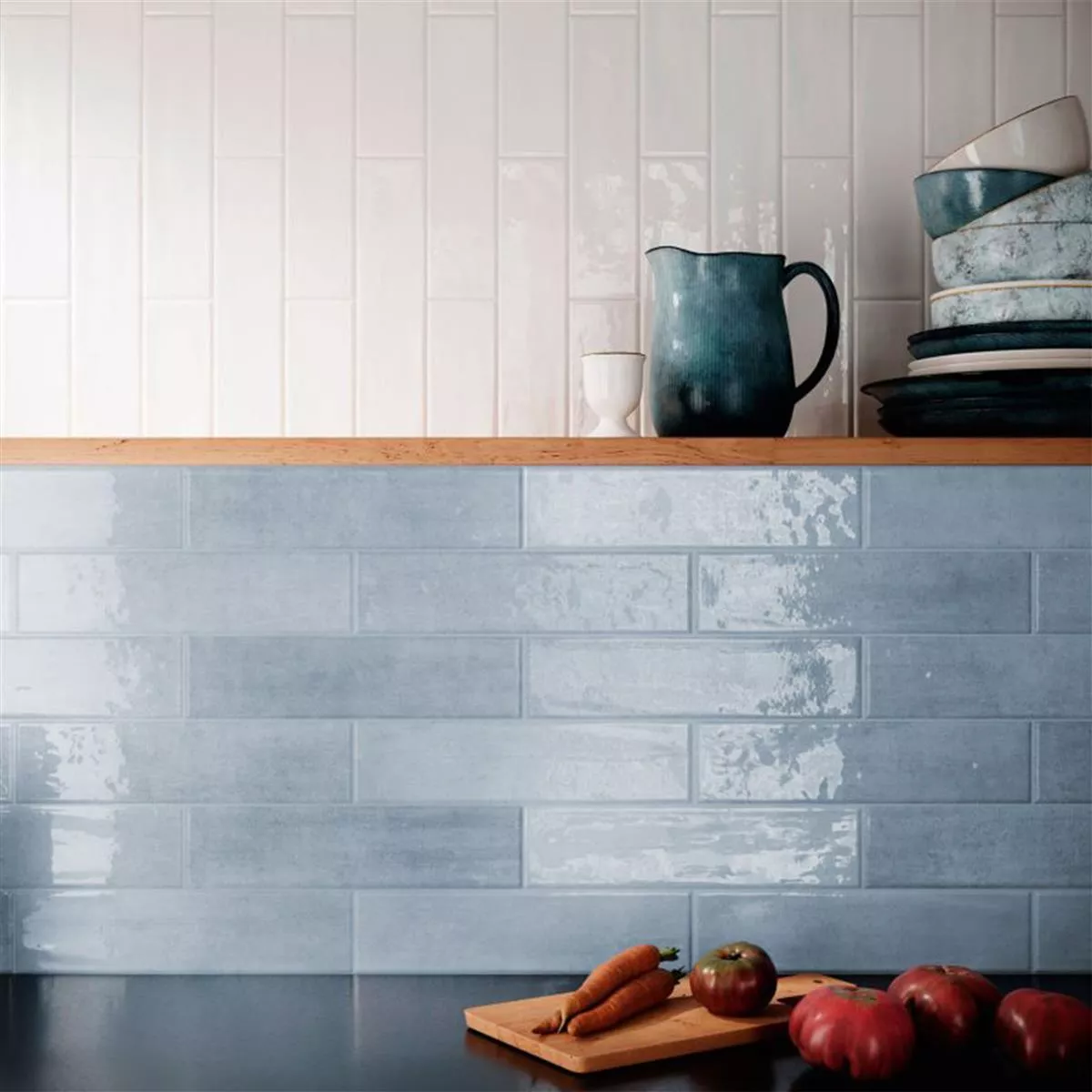 Dona alle tue pareti un'atmosfera rinfrescante con i nostri rivestimenti Tropea in blu lucido e struttura ondulata. Queste piastrelle rettangolari smaltate che misurano 7,5x30 cm e 8,4 mm di spessore donano un'estetica vintage alle tue stanze. La superficie ondulata e lucida conferisce alle vostre pareti una sottile dinamica.