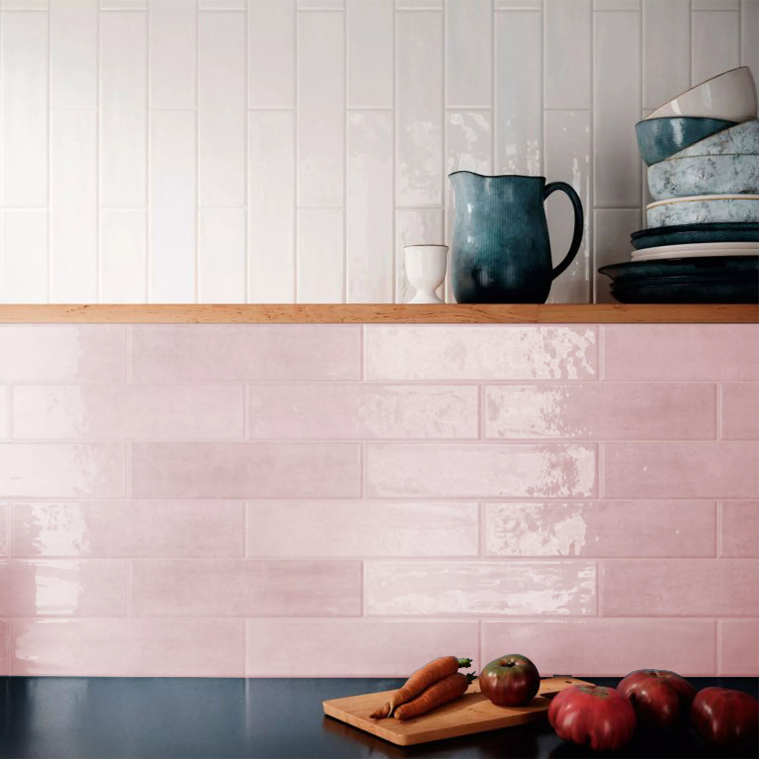 I rivestimenti Tropea in rosa lucido e struttura ondulata donano alle tue pareti un affascinante tocco vintage. Queste piastrelle rettangolari smaltate che misurano 7,5x30 cm e 8,4 mm di spessore donano un'estetica unica alla tua casa. La superficie ondulata e lucida dona ai vostri ambienti un discreto dinamismo e un tocco di eleganza.