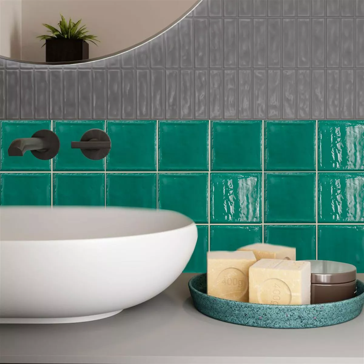 Il rivestimento quadrato Verbania di colore verde ondulato lucido da 20x20 cm e spessore 7,8 mm dona ai tuoi ambienti un aspetto vintage. La superficie ondulata e la finitura lucida creano un interessante gioco di luci e ombre.