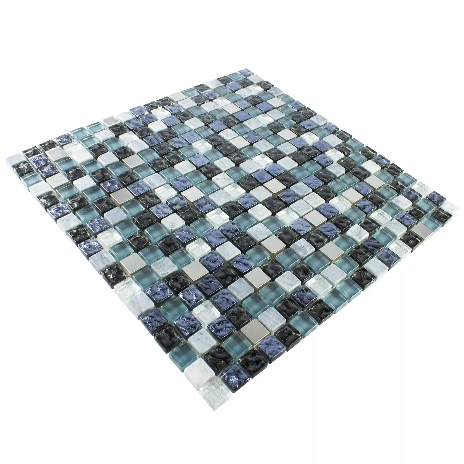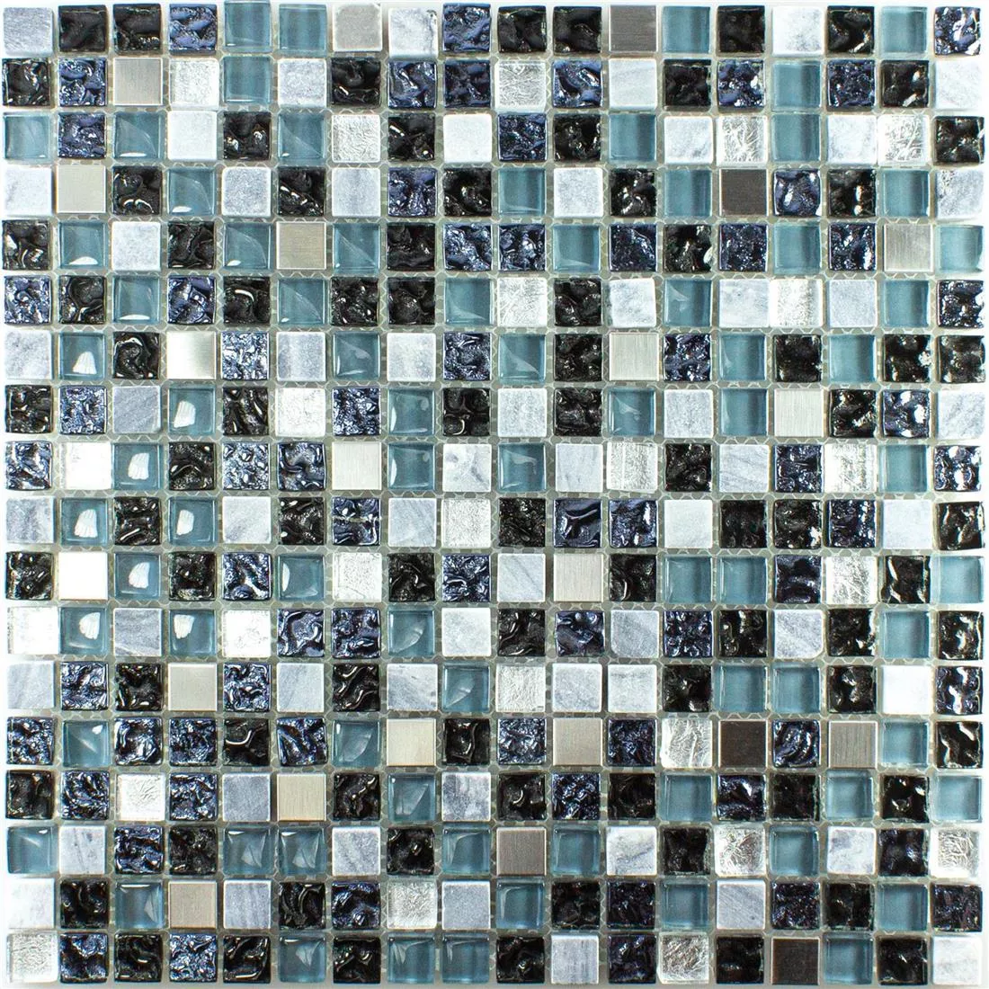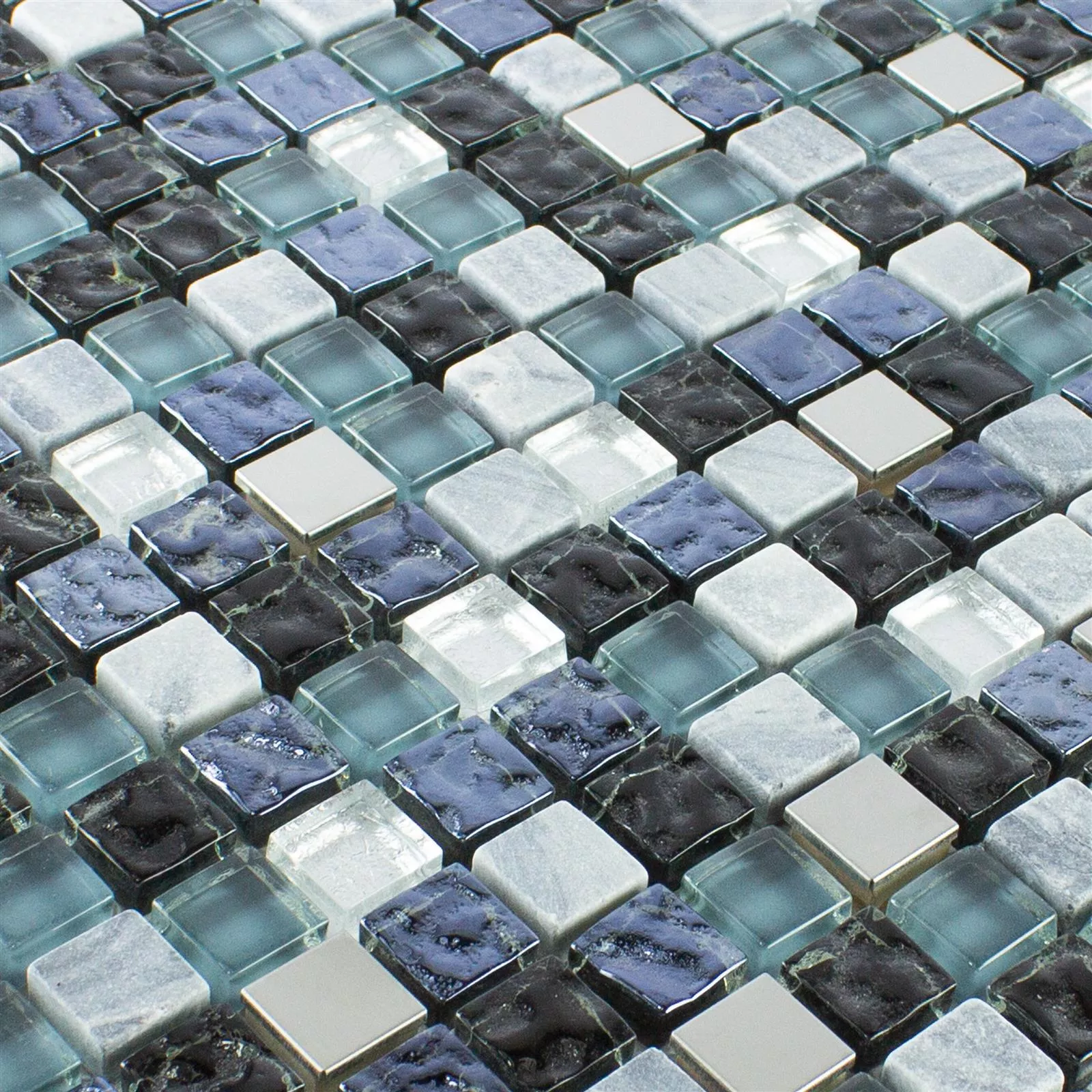 Vetro Pietra Naturale Metallo Mosaico Dysart Grigio Blu Argento