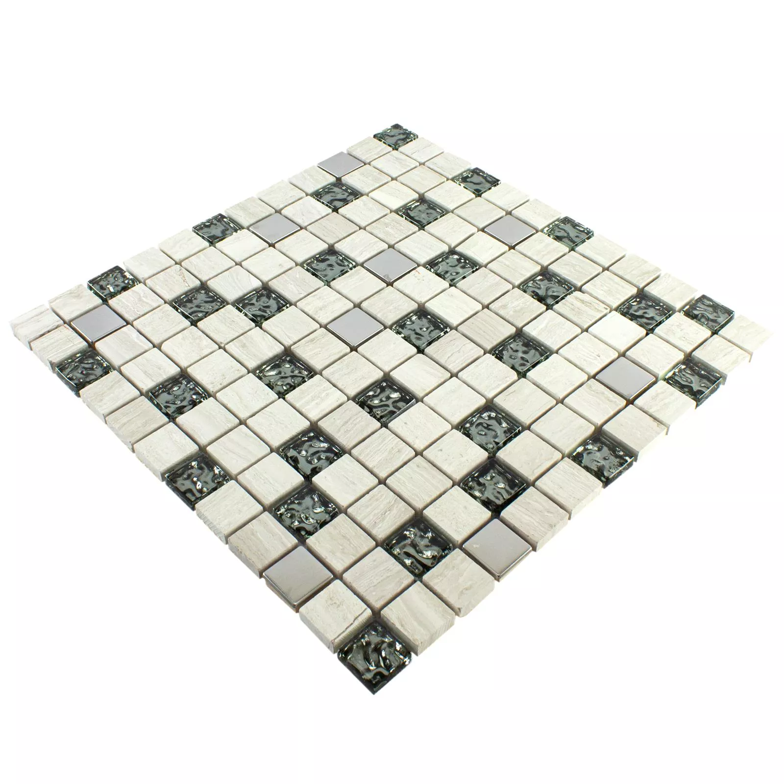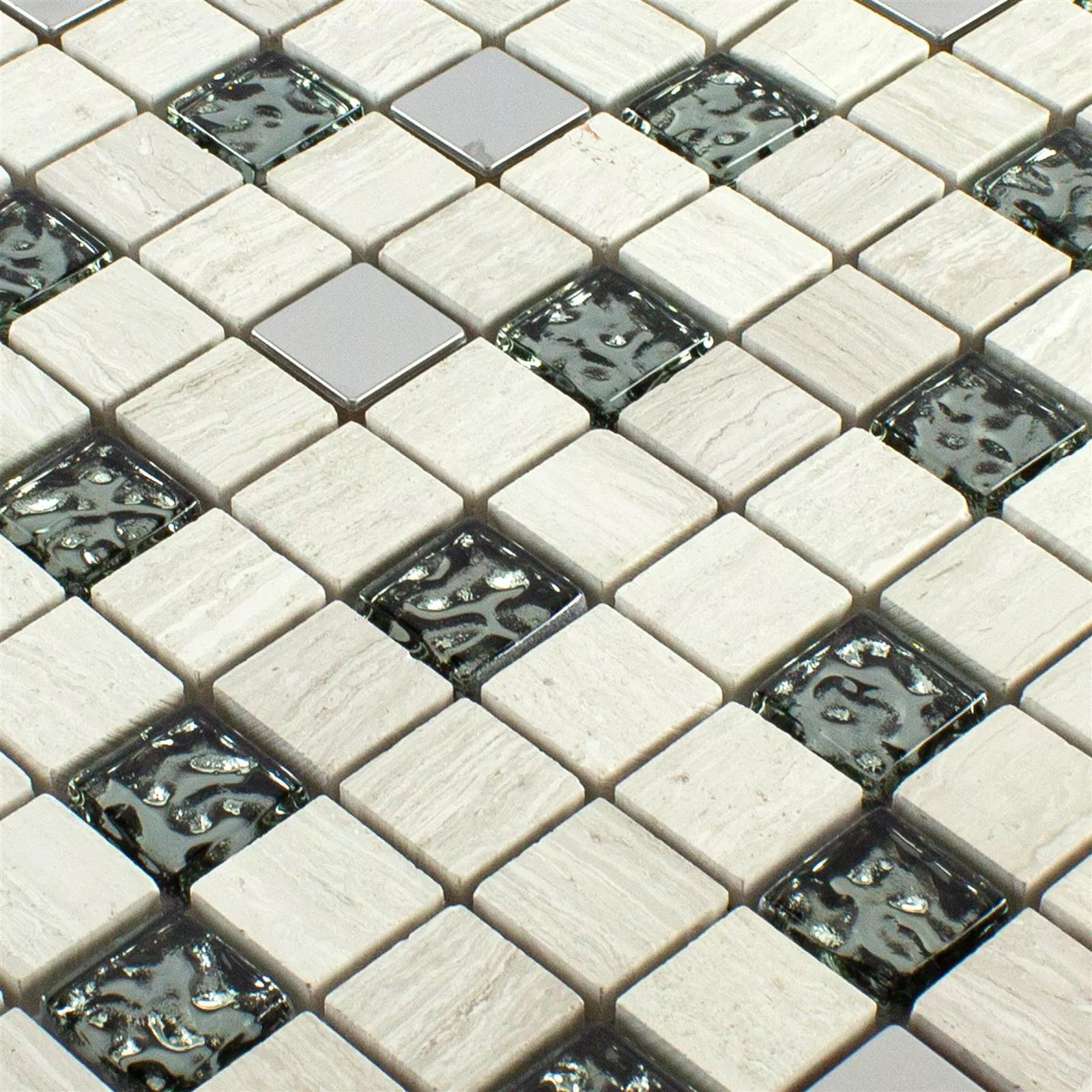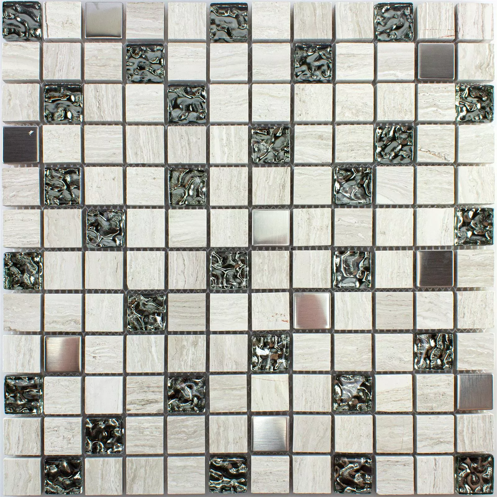 Vetro Pietra Naturale Metallo Mosaico Fulda Grigio Argento