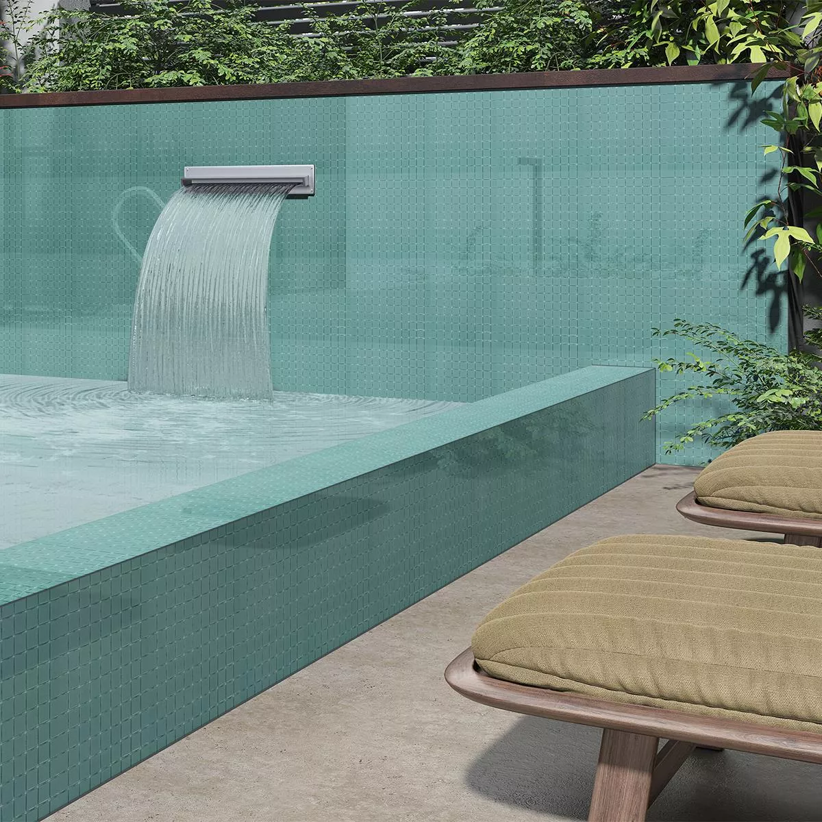 Il Venetia Pool Mosaic nel colore verde-blu è una tessera di mosaico di alta qualità che viene consegnata su un tappetino di 0,10 m². È ideale per la posa su pareti e pavimenti e offre un aspetto elegante grazie al suo formato quadrato con una dimensione della pietra di 25 x 25 mm e una dimensione del tappetino di 31,6 x 31,6 cm. Lo spessore della piastrella è di 4 mm.