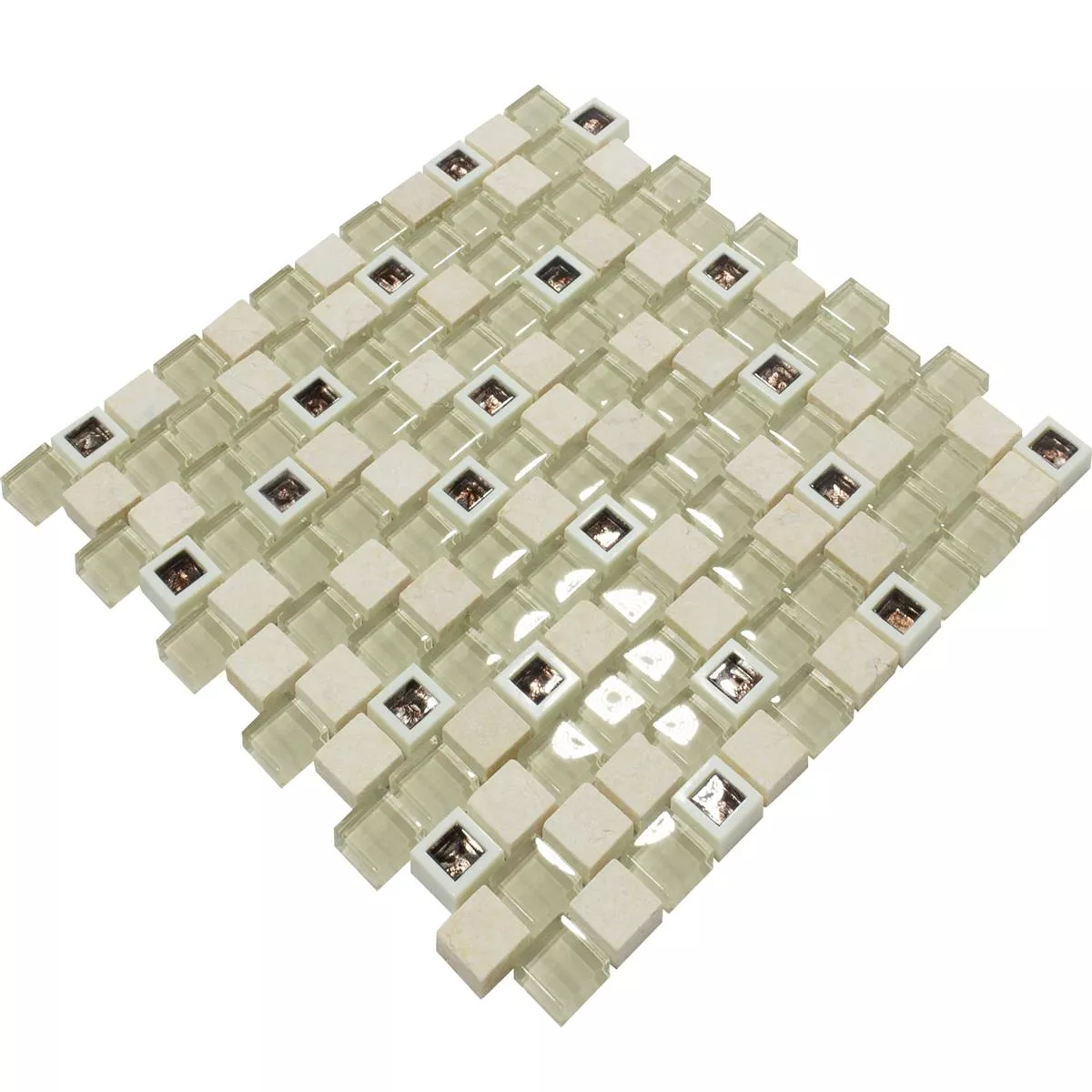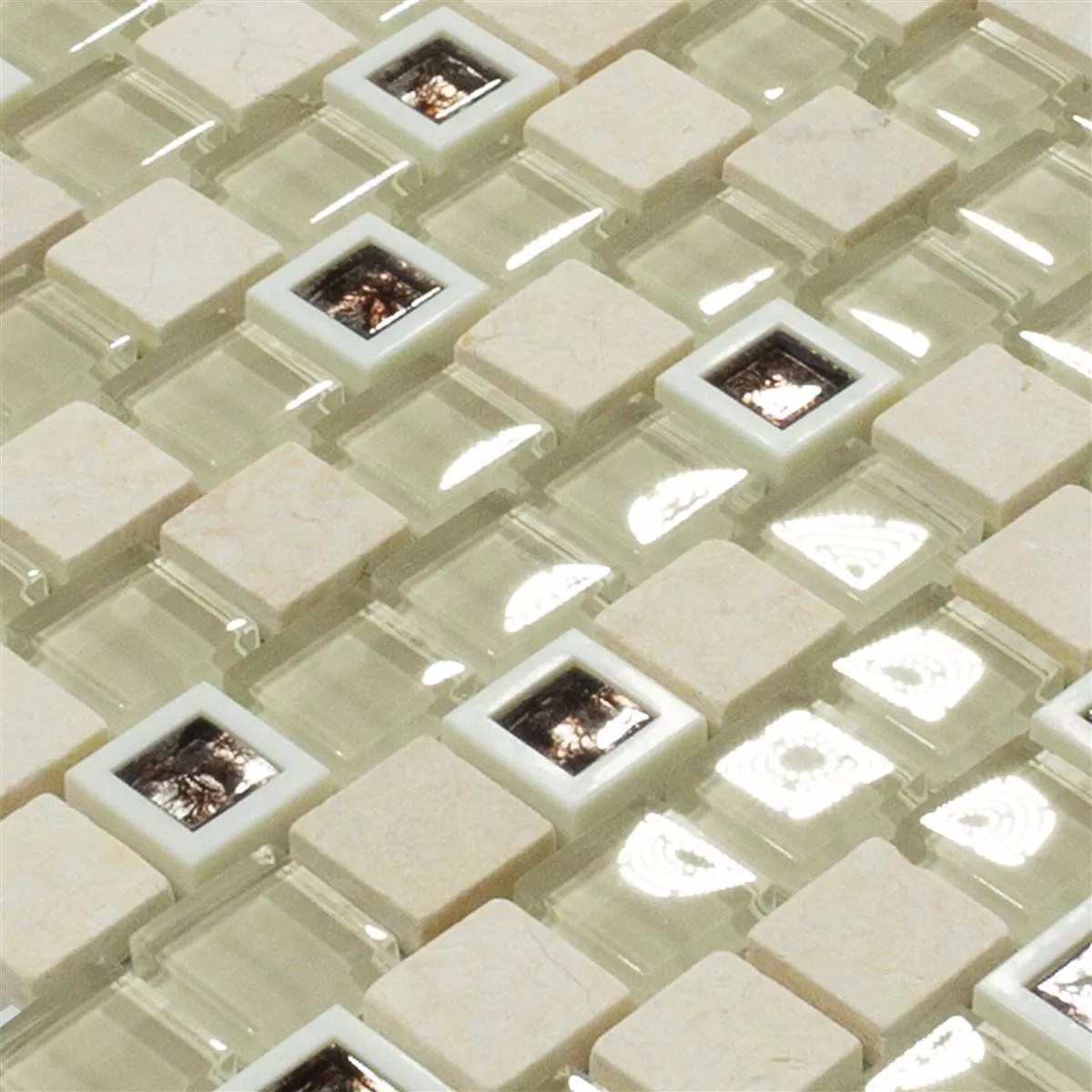 Le tessere di mosaico Lunaquell in beige uniscono la bellezza del marmo, del vetro, della plastica e della pietra naturale per donare alla tua casa un'eleganza senza tempo. Il formato quadrato e la superficie lucida e lucida creano un'atmosfera lussuosa.