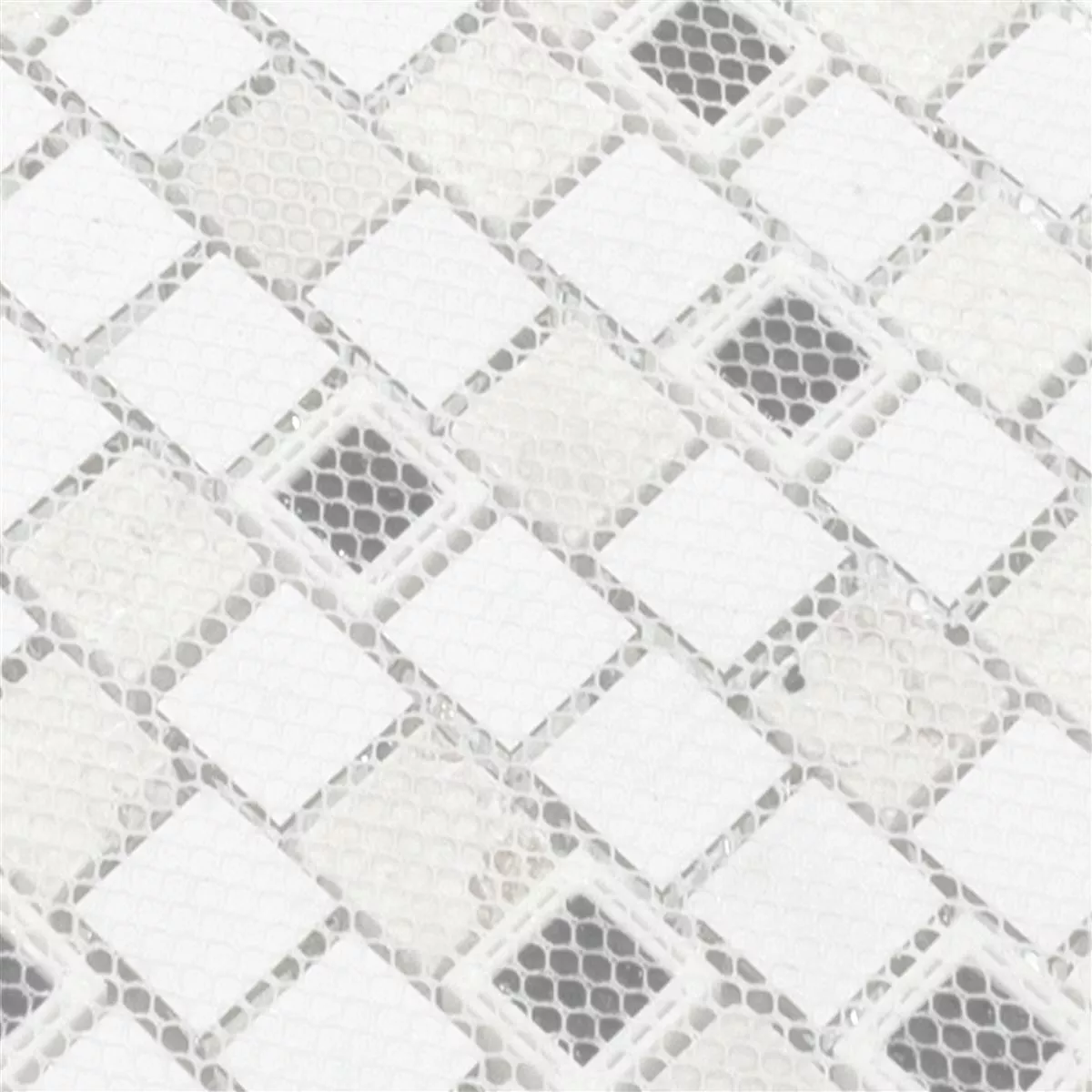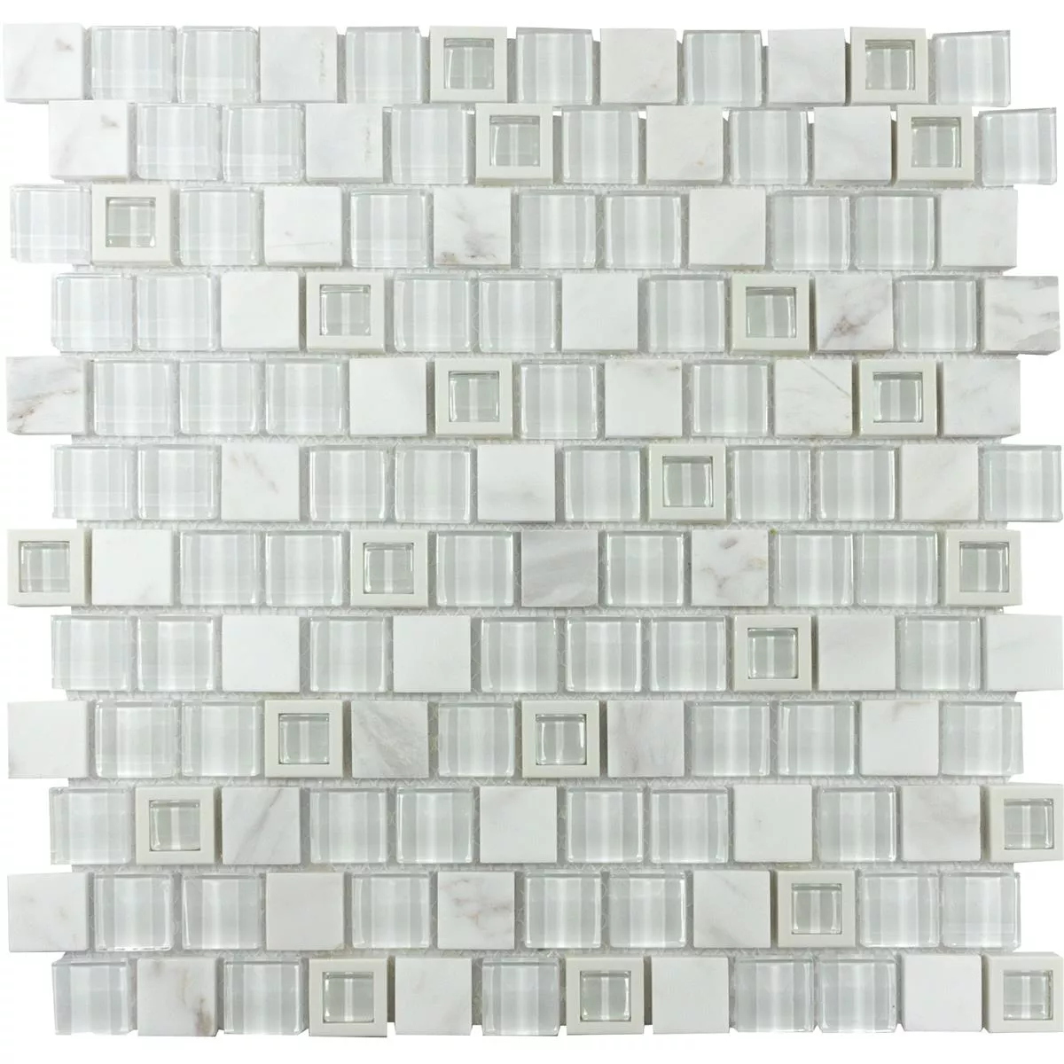 Le piastrelle a mosaico Lunaquell in bianco sono una combinazione armoniosa di marmo, vetro, plastica e pietra naturale per conferire alla tua casa un'eleganza senza tempo. Il formato quadrato e la superficie lucida e lucida creano un'atmosfera lussuosa.