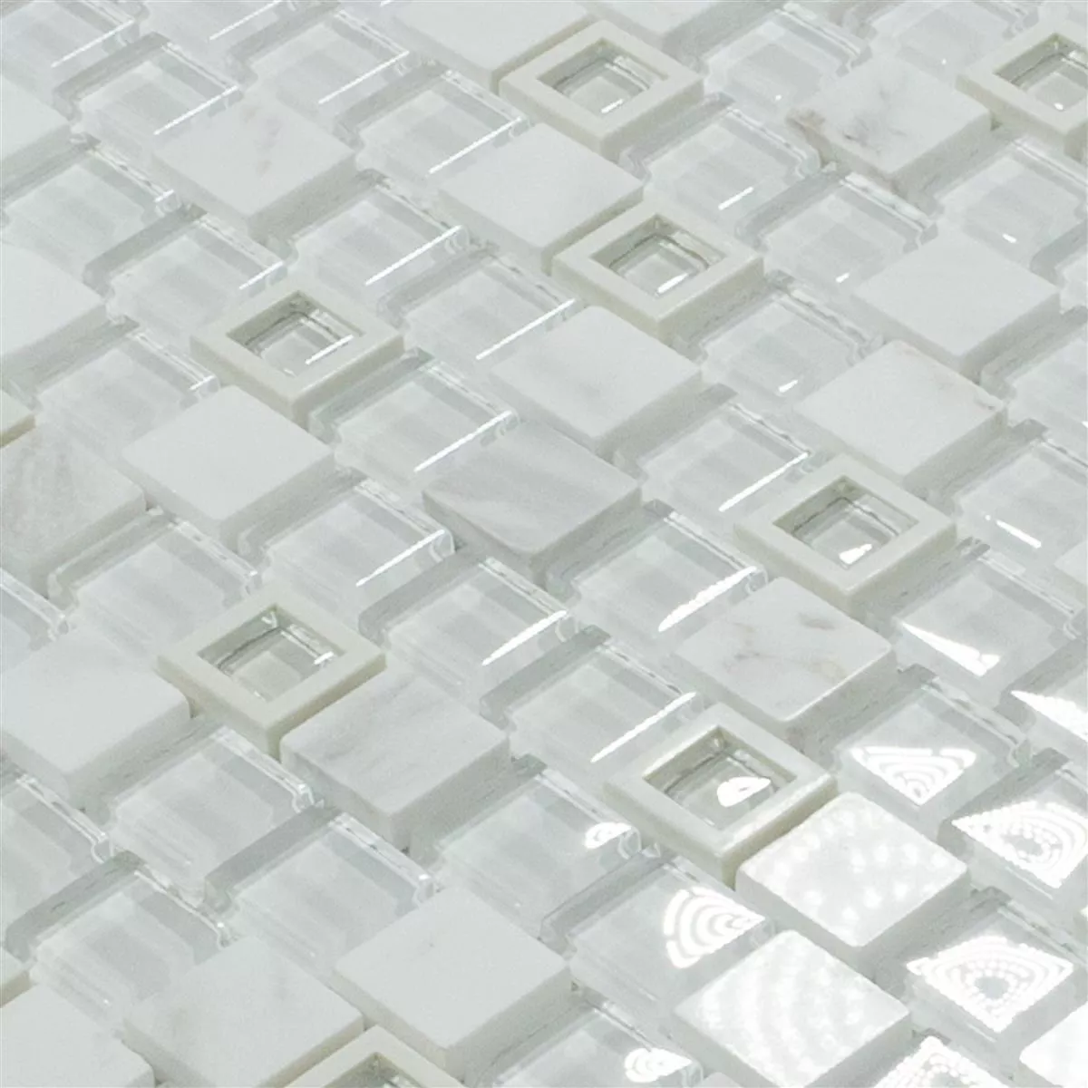 Mosaico in pietra naturale vetroplastica Lunaquell bianco – Armonia di materiali per la vostra casa.